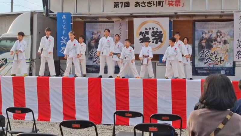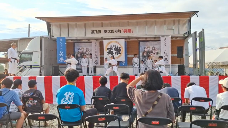 あさぎり町「笑祭(わっさい)」出演!地域の舞台で堂々の演武! 2025.10.05 第7回あさぎり町「笑祭(わっさい)」のステージで、空手教室の生徒たちが日頃の練習の成果を披露しました。 力強い気合と一糸乱れぬ動きに、会場から大きな拍手が送られました。 地域の皆さんの前で堂々と演武することで、子どもたちもまた一段と成長できた貴重な時間となりました。